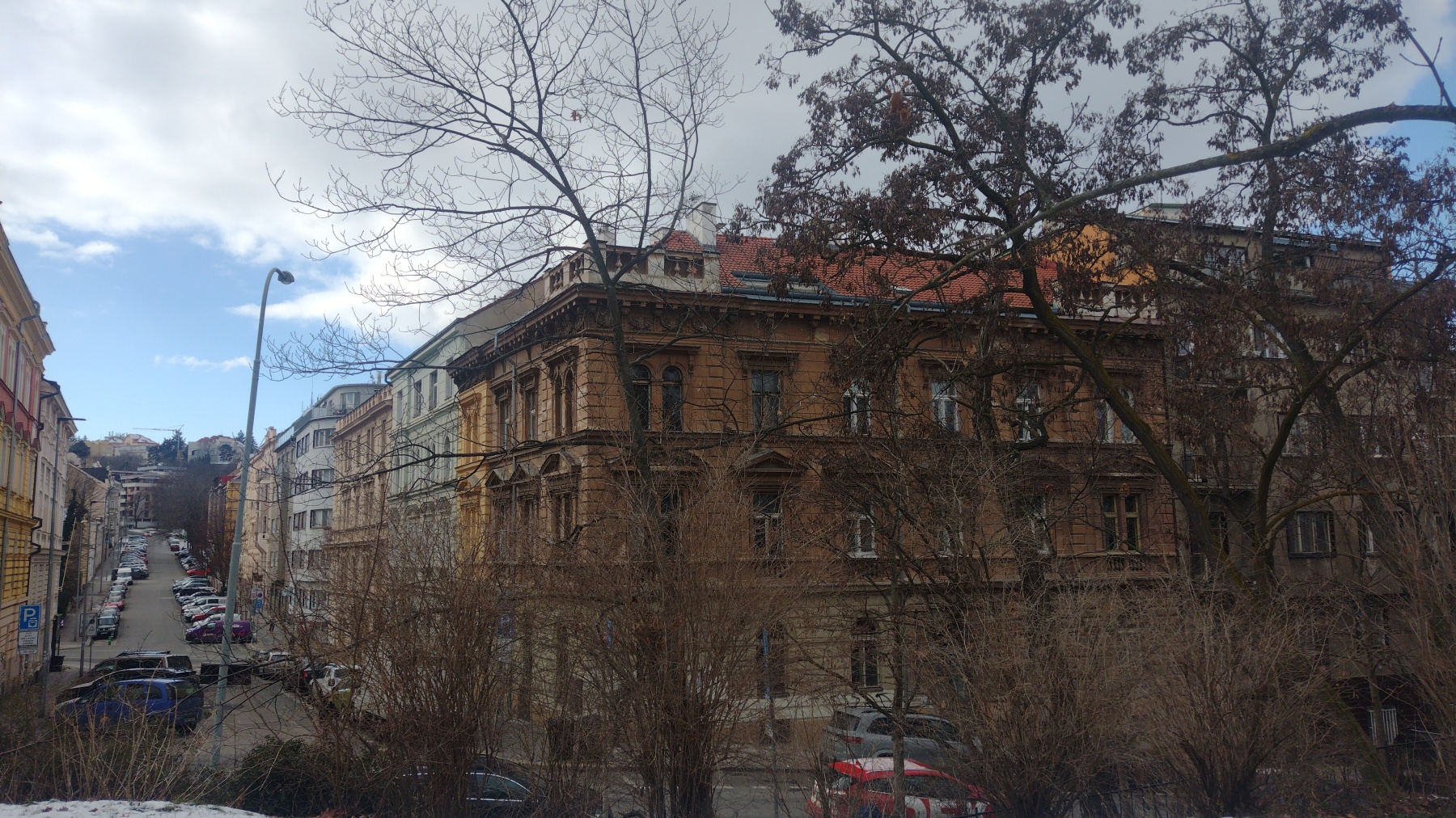 Zvenku často vidíme jen pohled do oken, někdy ale také vchod do domu se světle hnědou či oranžovou omítkou. Jak odhalil i web Filmová místa, v reálu se jedná o budovu na křižovatce ulic Na Skalce a U Nikolajky na pražském Smíchově. Když jsem se tam byla podívat, necítila jsem se tam ale úplně komfortně, kolem obcházeli lidé dost zvláštního vzezření či chování. Dům je jen pár kroků od sadů Na Skalce, což je vlastně poměrně hezký park, ale i tam to bylo tak zvláštně opuštěné… Něco takového ale seriálové postavy z Jedné rodiny asi neřeší, protože ti bydlí ve fiktivní Lomnici, kde to na žádný bující kriminální život nevypadá. I když člověk neví.