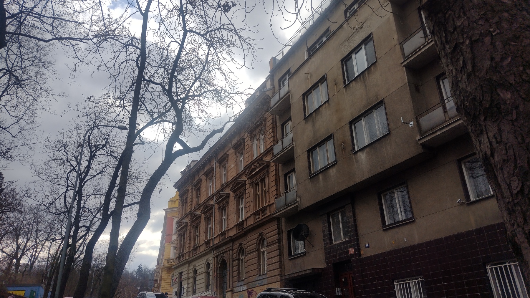 Zvenku často vidíme jen pohled do oken, někdy ale také vchod do domu se světle hnědou či oranžovou omítkou. Jak odhalil i web Filmová místa, v reálu se jedná o budovu na křižovatce ulic Na Skalce a U Nikolajky na pražském Smíchově. Když jsem se tam byla podívat, necítila jsem se tam ale úplně komfortně, kolem obcházeli lidé dost zvláštního vzezření či chování. Dům je jen pár kroků od sadů Na Skalce, což je vlastně poměrně hezký park, ale i tam to bylo tak zvláštně opuštěné… Něco takového ale seriálové postavy z Jedné rodiny asi neřeší, protože ti bydlí ve fiktivní Lomnici, kde to na žádný bující kriminální život nevypadá. I když člověk neví.