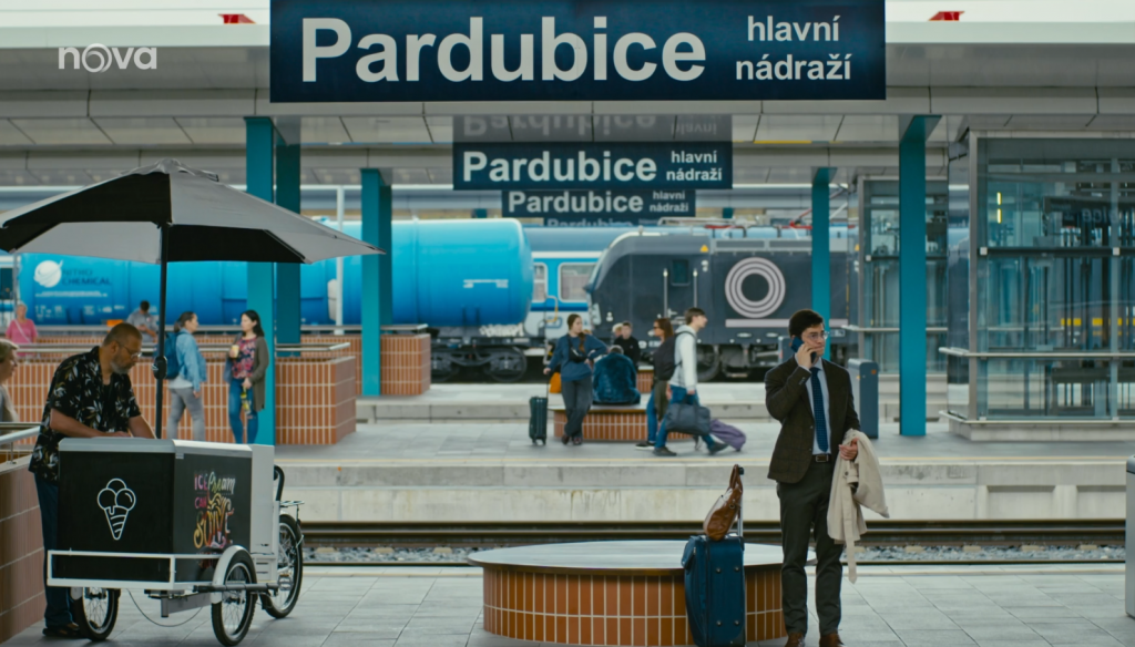 Pravda je, že i ve skutečných Poděbradech bychom se stejným vyhlídkovým vláčkem mohli svézt, ovšem pouze v období od dubna do září a za pěkného počasí. Našli jsme dokonce jeho zastávku na Zámeckém nábřeží. Opět jedno z míst, které jsme navštívili i v rámci seriálu. Tady nás opravdu moc tvůrci nemuseli vodit za nos, stačilo využít krásných lokací, které Poděbrady nabízí.
