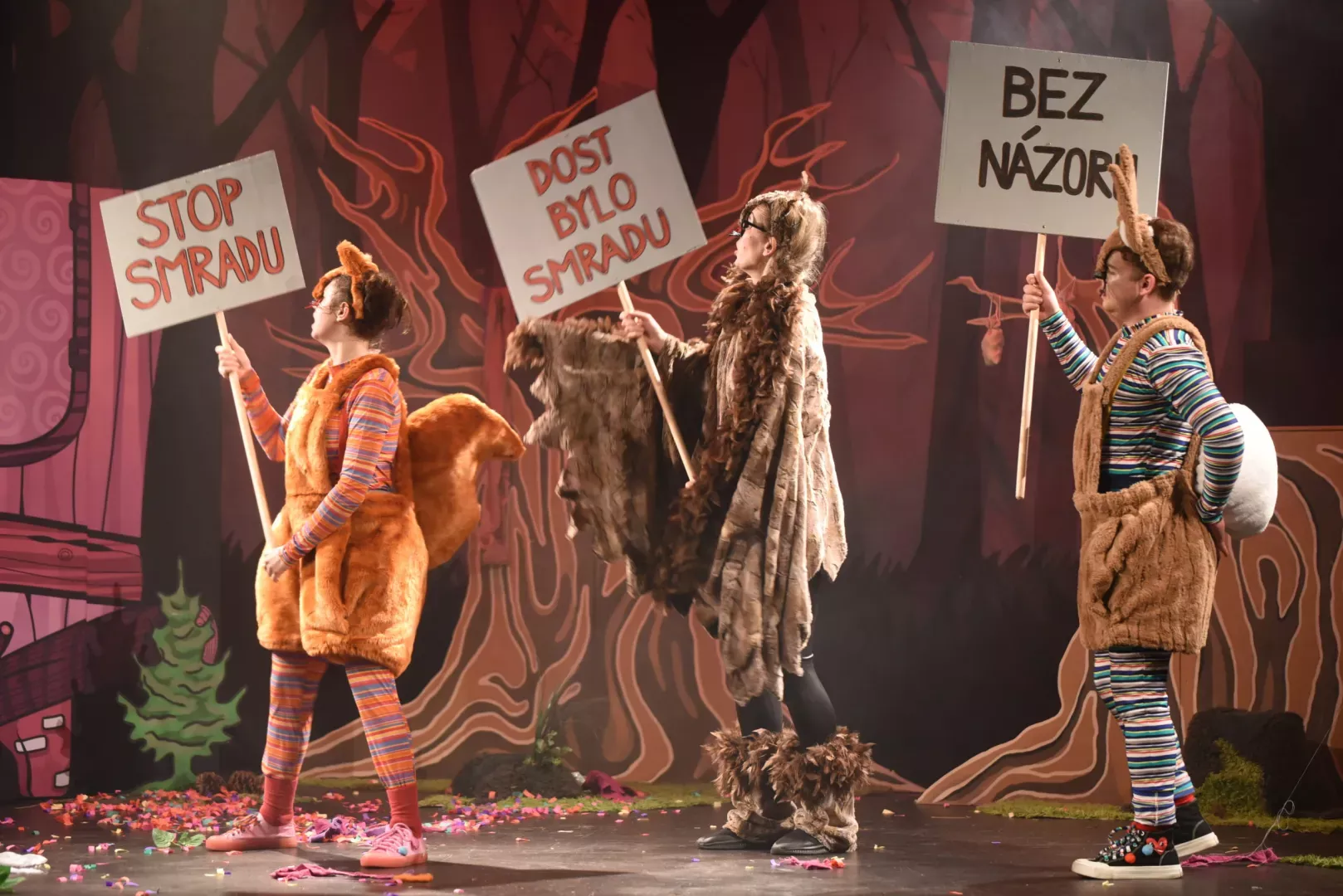 A to i přesto, že je to čarodějnice, u níž člověk nikdy neví – bude to postava záporná, nebo kladná? U ostatních postav to ale víte naprosto bezpečně – veverka Drzečka i zajíc Cyril jsou rozhodně kladní, to ale neznamená, že s nimi není legrace. V případě veverky v podání Jennifer Baluchové (alternací je Barbora Kepková) jsem ocenila především její příjemný hlas při zpěvu, a to i v poměrně vysokých tóninách. Rovněž humor jí rozhodně nechyběl, nejvíc se mi líbilo, jak rychle se dokázala „nakýblovat“ k Bordelíně domů.