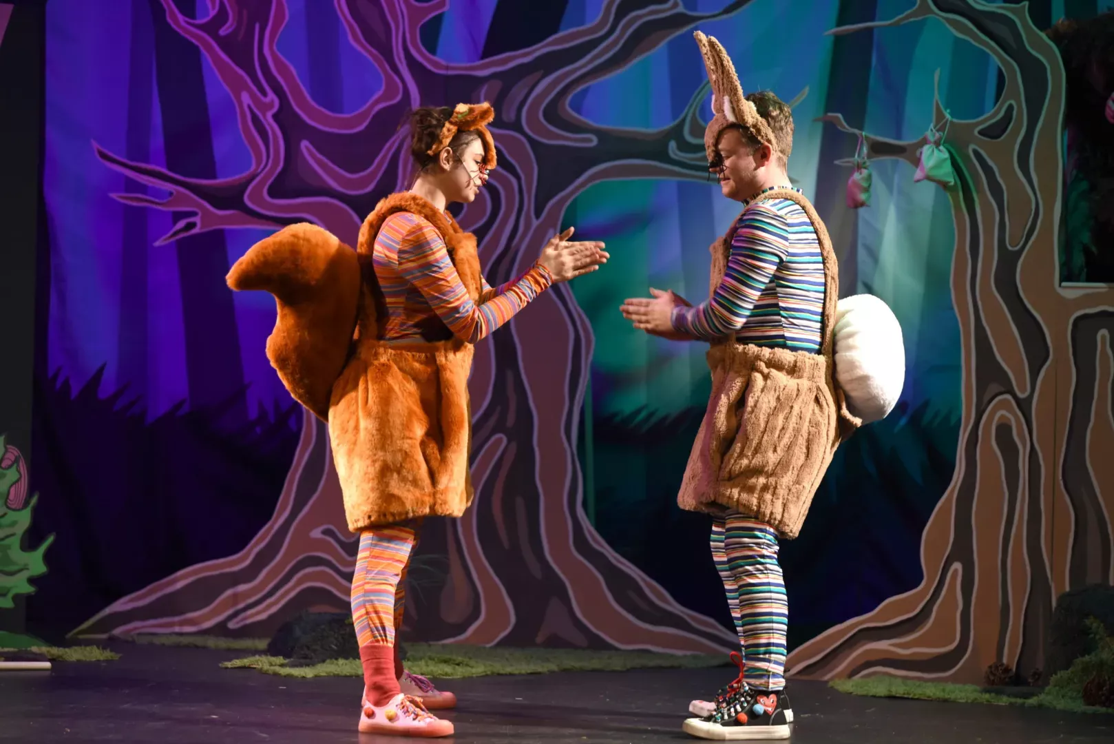 A to i přesto, že je to čarodějnice, u níž člověk nikdy neví – bude to postava záporná, nebo kladná? U ostatních postav to ale víte naprosto bezpečně – veverka Drzečka i zajíc Cyril jsou rozhodně kladní, to ale neznamená, že s nimi není legrace. V případě veverky v podání Jennifer Baluchové (alternací je Barbora Kepková) jsem ocenila především její příjemný hlas při zpěvu, a to i v poměrně vysokých tóninách. Rovněž humor jí rozhodně nechyběl, nejvíc se mi líbilo, jak rychle se dokázala „nakýblovat“ k Bordelíně domů.