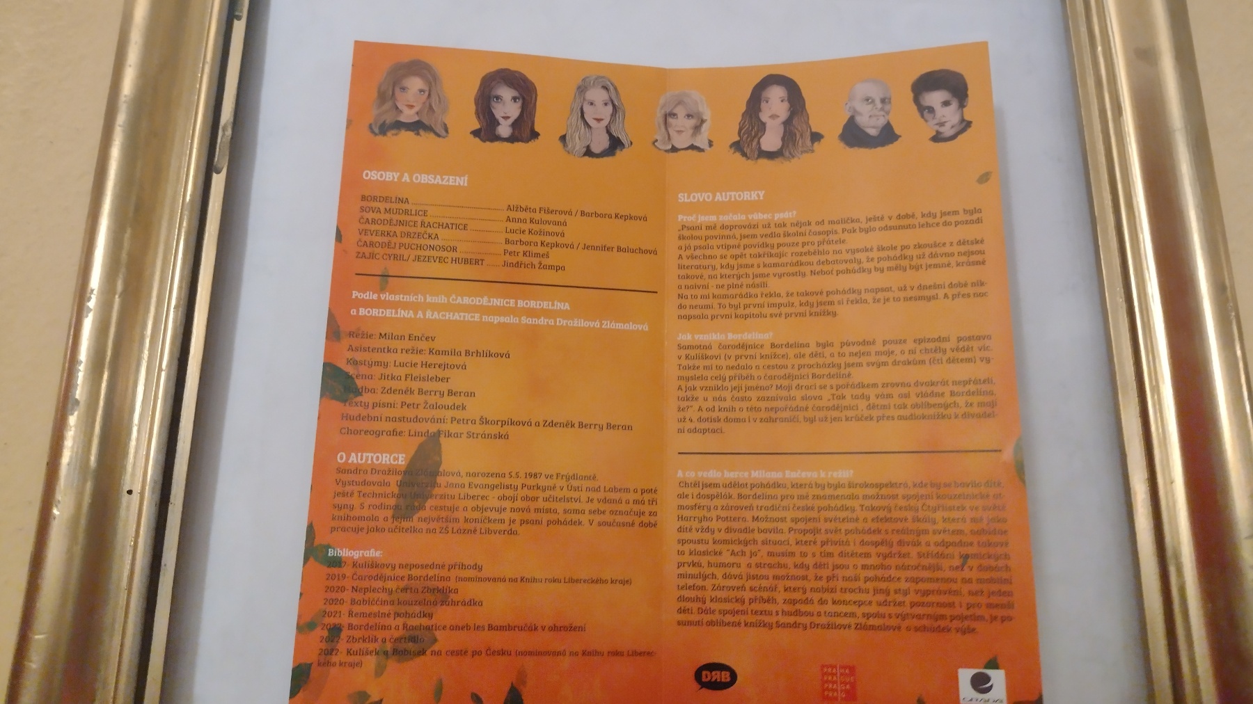 Máte pocit, že vaše děti milují nepořádek a „binčus“? Tak to se jim jistě zalíbí pohádková Čarodějnice Bordelína už podle jména. Původně se jedná o dětské knížky od Sandry Dražilové – Zlámalové, ale nyní se dočkaly i muzikálové podoby, která se v současnosti hraje v pražském Divadle Radka Brzobohatého (neboli „DRB“). Režie se ujal Milan Enčev, hudbu napsal Zdeněk Berry Beran, texty písní zase Petr Žaloudek a na choreografiích se podílela Linda Fikar Stránská. Premiéru mělo představení 18. a 19. března, přičemž já jsem navštívila až reprízu 2. dubna.