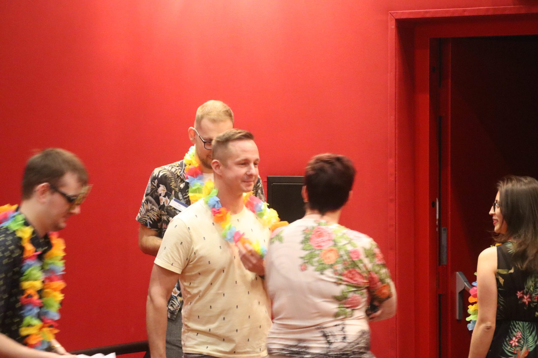 Stejně tak občerstvení prodávali pánové i slečny vyzdobené obdobně a ostatně i to občerstvení občas hrálo všemi barvami. Kromě obvyklých nachos jsem totiž zahlédla i popcorn v duhových barvách.