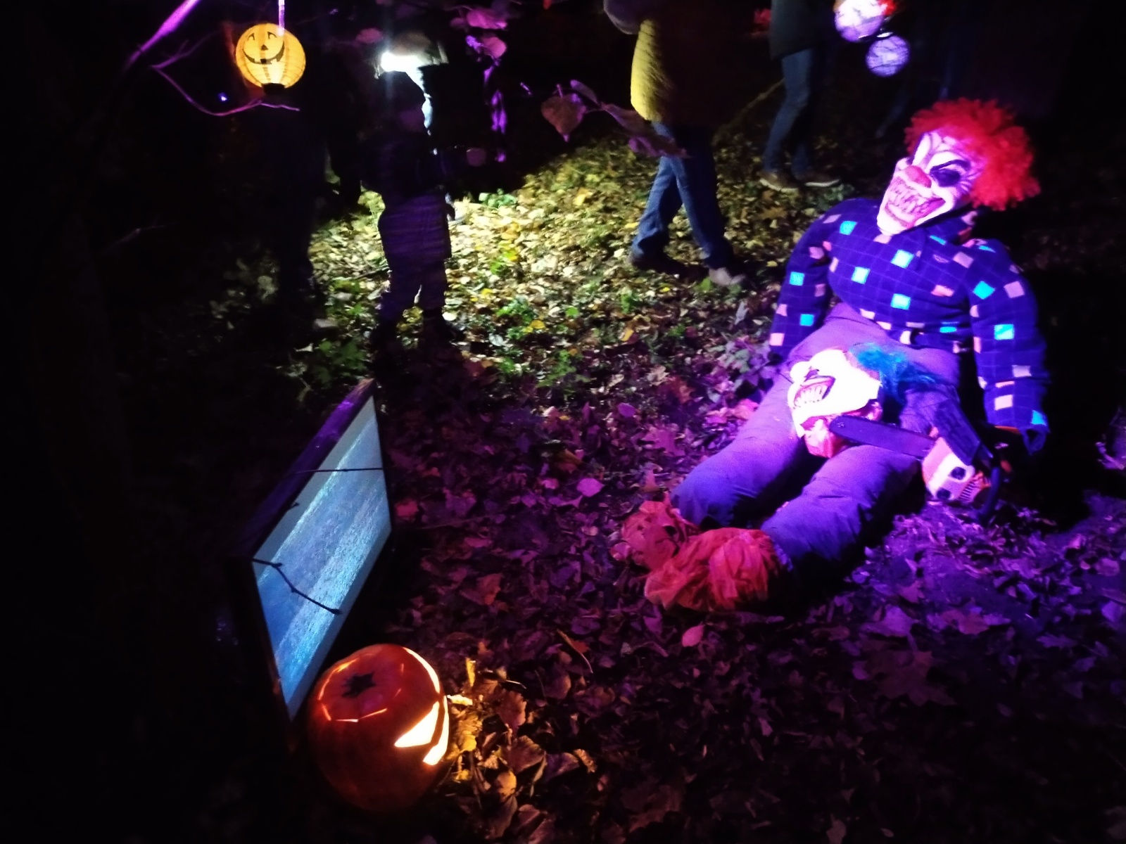 V cíli na účastníky pochodu čekalo překvapení, strašidelný les, v němž se nacházelo plno nejrůznějších potvůrek. Byl tam třeba obří pavouk, strašidelný kněz, který si na svém povozu vezl rakev, upír, spousta duchů, nebo děsivý klaun s motorovou pilou.