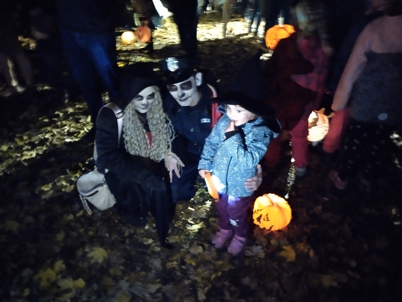 Samozřejmostí byly i nejrůznější strašidelné masky. Přeci jen šlo o Halloween party. Řadu přítomných zaujalo například dítě, které mělo nůžky „zapíchnuté“ v hlavě, což vypadalo velmi autenticky.