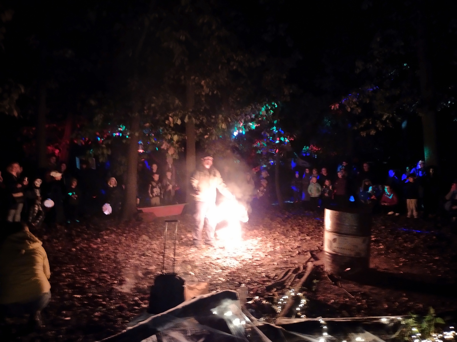 V cíli na účastníky pochodu čekalo překvapení, strašidelný les, v němž se nacházelo plno nejrůznějších potvůrek. Byl tam třeba obří pavouk, strašidelný kněz, který si na svém povozu vezl rakev, upír, spousta duchů, nebo děsivý klaun s motorovou pilou.