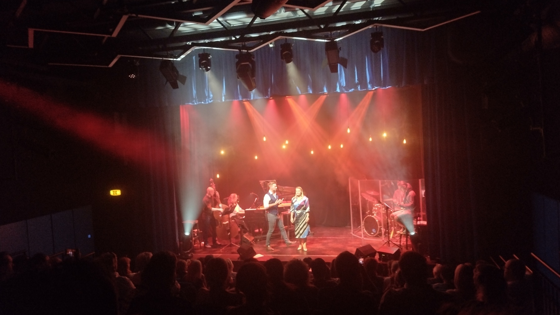Za bonus pak považuji afterparty v divadelním klubu. Také si vždycky říkáte, kam asi hvězdy z Karlína chodí po divadle zapařit? Tak my, co jsme navštívili tento koncert, už tušíme. Akorát, když se tam nažene moc lidí najednou (což se logicky po koncertě stalo), není tam moc k hnutí. K dispozici bylo i občerstvení, ale mizelo nadzvukovou rychlostí. Naštěstí pití všeho druhu bylo dost. Měli jsme díky tomu oslavenci poblahopřát a také být u toho, když mu byl předán krásný dort s logy z různých muzikálů. A také pak konečně někdo zazpíval tu jedinou písničku, co na jevišti nezazněla – Hodně štěstí, zdraví! 🙂
