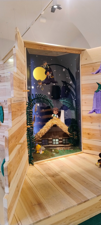 Stejně tak tu nezapomínají ani na ty nejmenší návštěvníky. Řada prvků je zde nějakým způsobem interaktivních. Nechybí ani koutek, kde děti mohou rozezvonět zvonky, teď mám na mysli takové ty fialové kytičky. Stejně tak si tu mohou vzít třeba tykadýlka nebo sukýnku a samy se proměnit v hrdiny z pohádek a večerníčků. Právě zde jsme potkaly babičku s vnučkou Josefínkou, které nám prozradily, že sem chodí stále dokola a dokola a dokážou tu strávit i celé hodiny. No, řekněte, není to neuvěřitelně roztomilé? 🙂