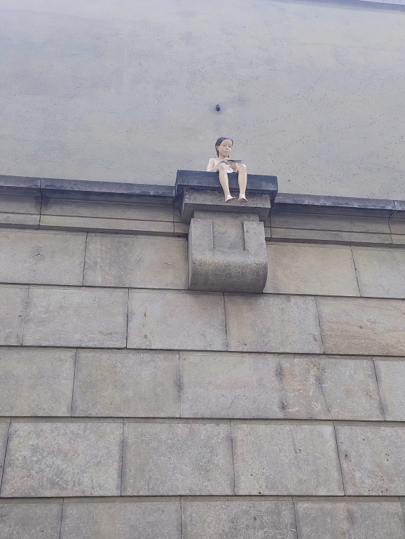 Kromě toho jsou tu také samotné vitríny s jednotlivými knihami. Již dopředu je určeno, na kterou ze stránek se budeme dívat, ale výběr to byl dobrý a pestrý. V Lipském rukopise najdeme i podobiznu samotného Kosmy. Jak se na výstavě dočteme, není vlastně vůbec podle skutečnosti, ale to nevadí. Nějak si slavného kronikáře představovat musíme, a proto je jeho podobizna, inspirována touto ilustrací, také před vstupem do prostor zrcadlové kaple.