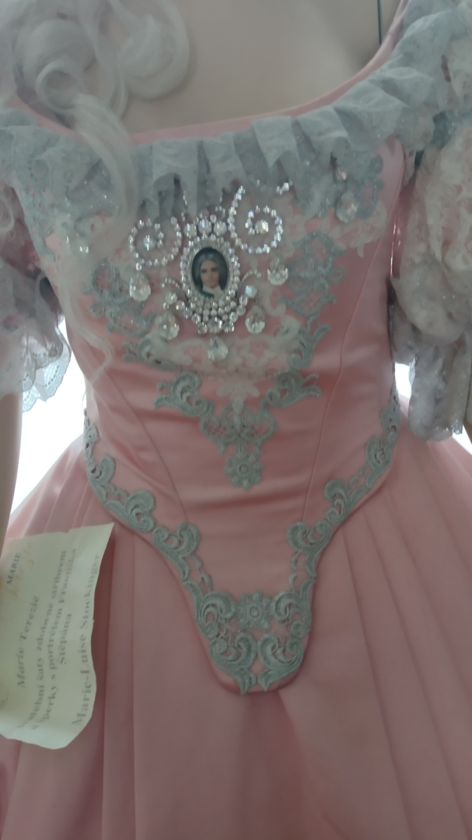 Obrazy ovšem nejsou to jediné, co po filmařích na Valticích zůstalo. V audienčním sále jsou totiž mimo jiné vystaveny i krásné šaty – seriálový kostým hlavní hrdinky. Jedná se o její svatební šat. V živůtku róby v oblasti pod dekoltem je navíc i medailonek s podobiznou »ženicha Františka Štěpána«, tedy Vojty Kotka.