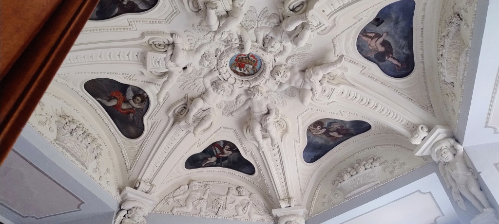 Každopádně já jsem zatím navštívila první okruh, díky němuž jsem nahlédla i do tří věží zámku. Asi nejkrásnější je hned ta první, kterou jsme viděli, jelikož je v ní umístěna kaple zasvěcená sv. Serváci, zachovaná v barokní podobě a především s krásně vyzdobeným stropem. Za zmínku pak samozřejmě stojí i vzácný oltářní obraz – jedná se o originál od známého českého malíře Karla Škréty.