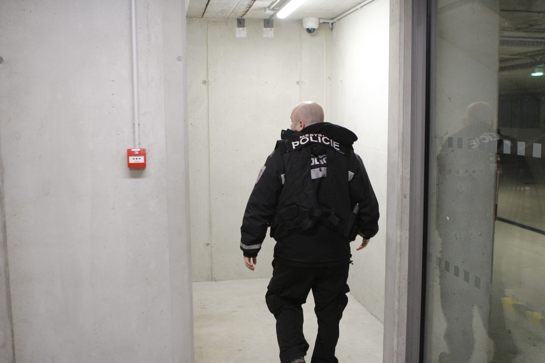 Nasedáme do auta. Nejprve mne zarazí, že jsou všechny pásy zapnuté a nemohu se připoutat, po chvíli mi ale chlapi vysvětlí, co už dávno vím, jen mi to nedochází. Oni se ze zákona poutat nemusí. Pásy totiž nejsou pro strážníky výhodné, protože v případě, že jedou k zásahu a potřebují rychle vystupovat, by je pás zbytečně zpomaloval. My se ale poutáme a už opravdu vyjíždíme.