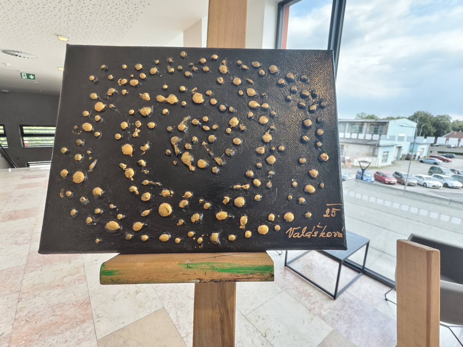 Je čtvrtek odpoledne a já přicházím do KD Milovice. Aukce začíná v 17 hodin, jsem tady dřív a prohlížím si vystavené obrazy. Všechny vytvářeli žáci Základní školy TGM Milovice a také paní učitelka Valášková. Nemohu říct malovali, neb byla použita široká škála technik tvorby.