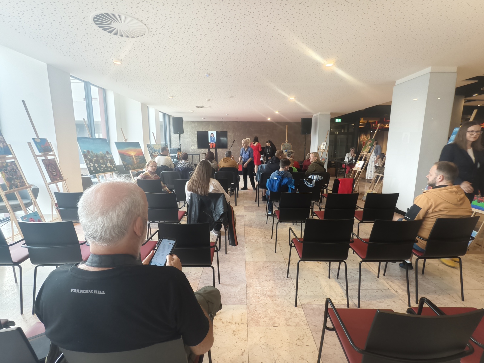 Je čtvrtek odpoledne a já přicházím do KD Milovice. Aukce začíná v 17 hodin, jsem tady dřív a prohlížím si vystavené obrazy. Všechny vytvářeli žáci Základní školy TGM Milovice a také paní učitelka Valášková. Nemohu říct malovali, neb byla použita široká škála technik tvorby.