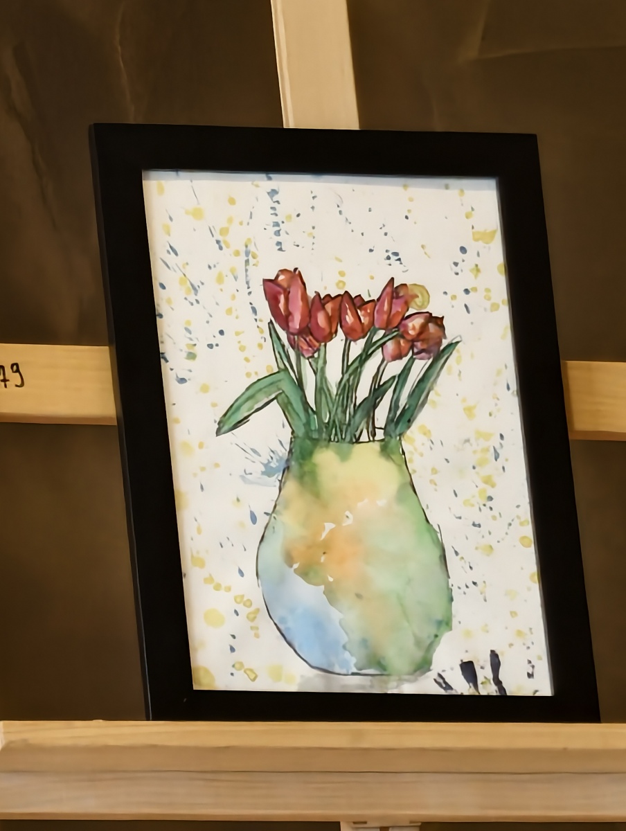 Je čtvrtek odpoledne a já přicházím do KD Milovice. Aukce začíná v 17 hodin, jsem tady dřív a prohlížím si vystavené obrazy. Všechny vytvářeli žáci Základní školy TGM Milovice a také paní učitelka Valášková. Nemohu říct malovali, neb byla použita široká škála technik tvorby.