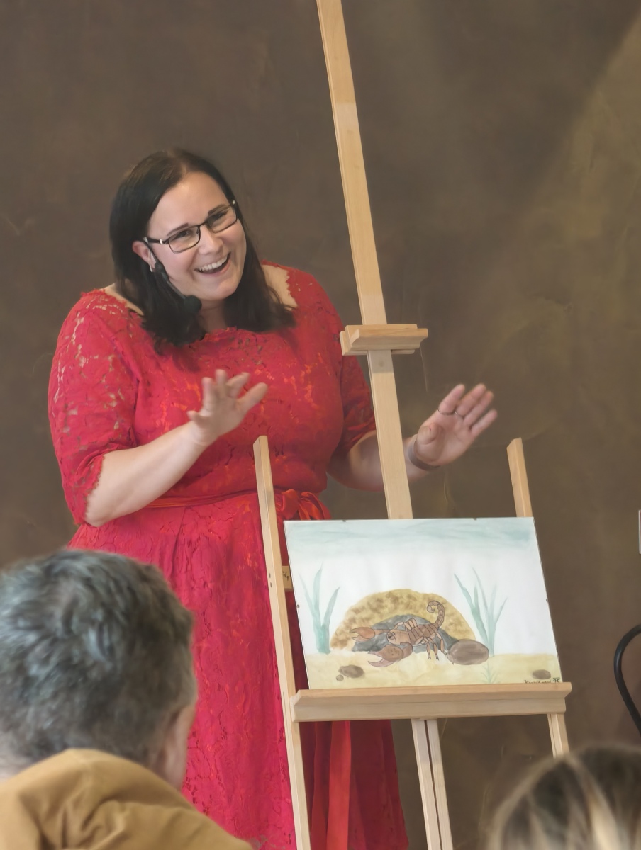 Je jen chvilka do začátku, ale stále přicházejí další lidé a je potřeba přidávat židle. Dražba, kterou moderuje jedna z učitelek školy Aneta Svobodová, začíná.