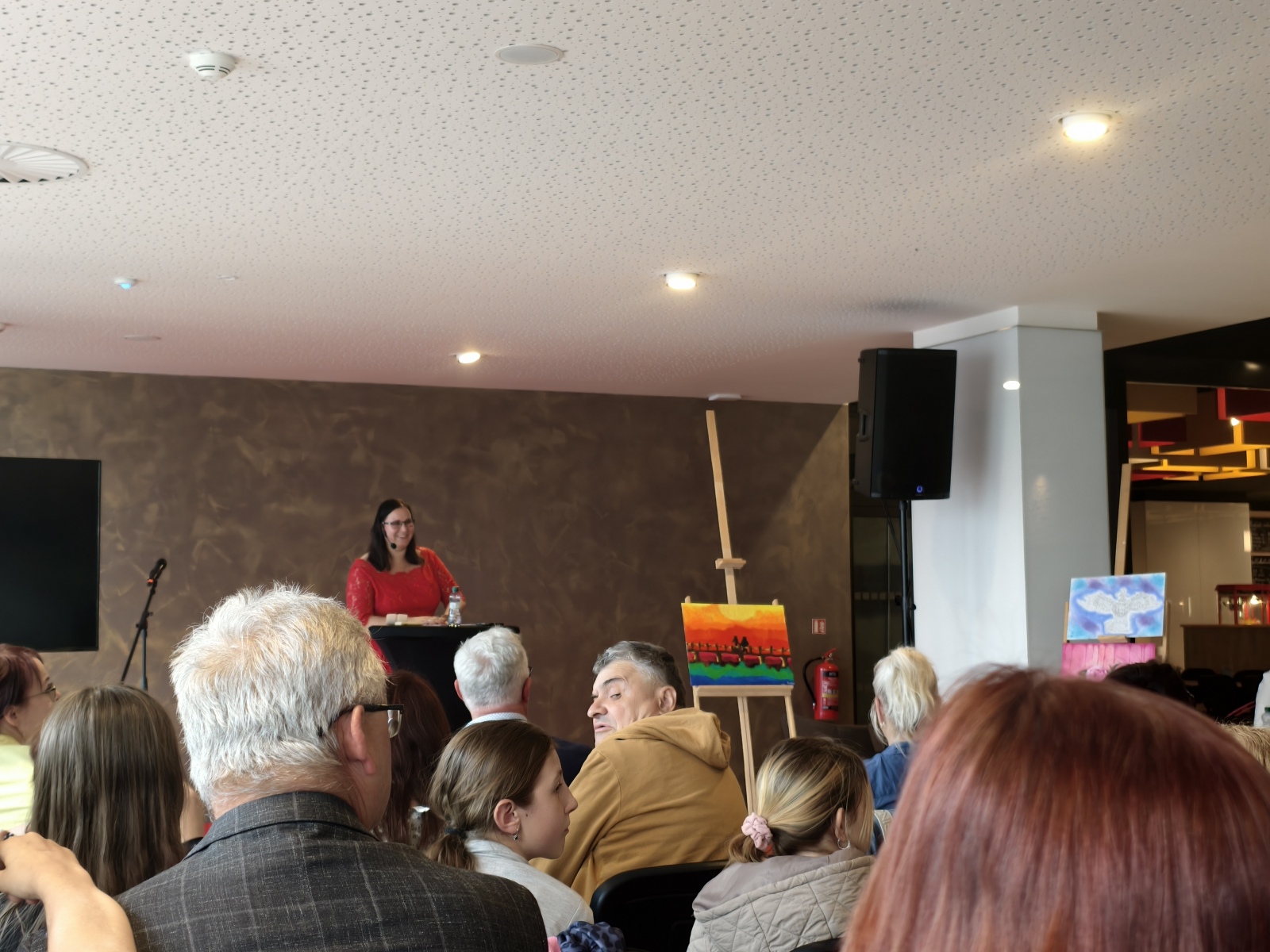 Je čtvrtek odpoledne a já přicházím do KD Milovice. Aukce začíná v 17 hodin, jsem tady dřív a prohlížím si vystavené obrazy. Všechny vytvářeli žáci Základní školy TGM Milovice a také paní učitelka Valášková. Nemohu říct malovali, neb byla použita široká škála technik tvorby.