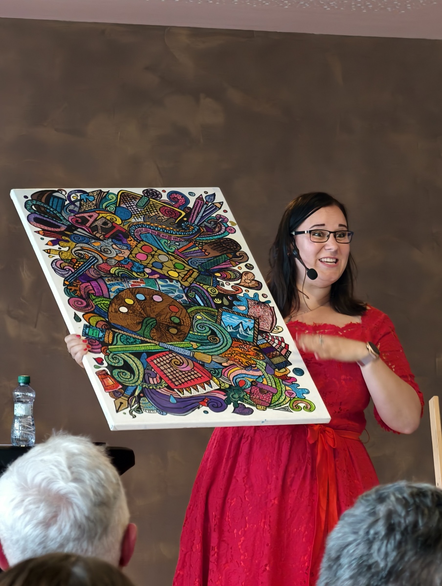 Nejkrásnější moment aukce podle ale mého názoru nebyl ten, kdy Monika, pro níž se peníze sbíraly, promlouvala o svém onemocnění prostřednictvím videa, které si připravila, případně pak i osobně. Bylo to silné, vehnalo mi to slzy do očí, o tom žádná. Ale pro mě byl ještě hezčí jiný okamžik, a to ten, kdy se mi za 1200 korun povedlo vydražit steampunkový kamion a šla jsem si ho zaplatit. V tu chvíli, kdy jdu platit obraz, ke mně přijde mladá drobná blondýnka a říká: „Dám vám 1500 korun, když mi ten obrázek přenecháte,“ chvíli na ni jen tak koukám a už slyším paní zástupkyni, která říká „to je maminka.“