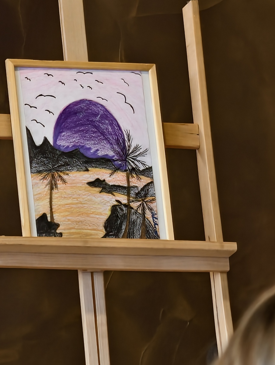 Je čtvrtek odpoledne a já přicházím do KD Milovice. Aukce začíná v 17 hodin, jsem tady dřív a prohlížím si vystavené obrazy. Všechny vytvářeli žáci Základní školy TGM Milovice a také paní učitelka Valášková. Nemohu říct malovali, neb byla použita široká škála technik tvorby.