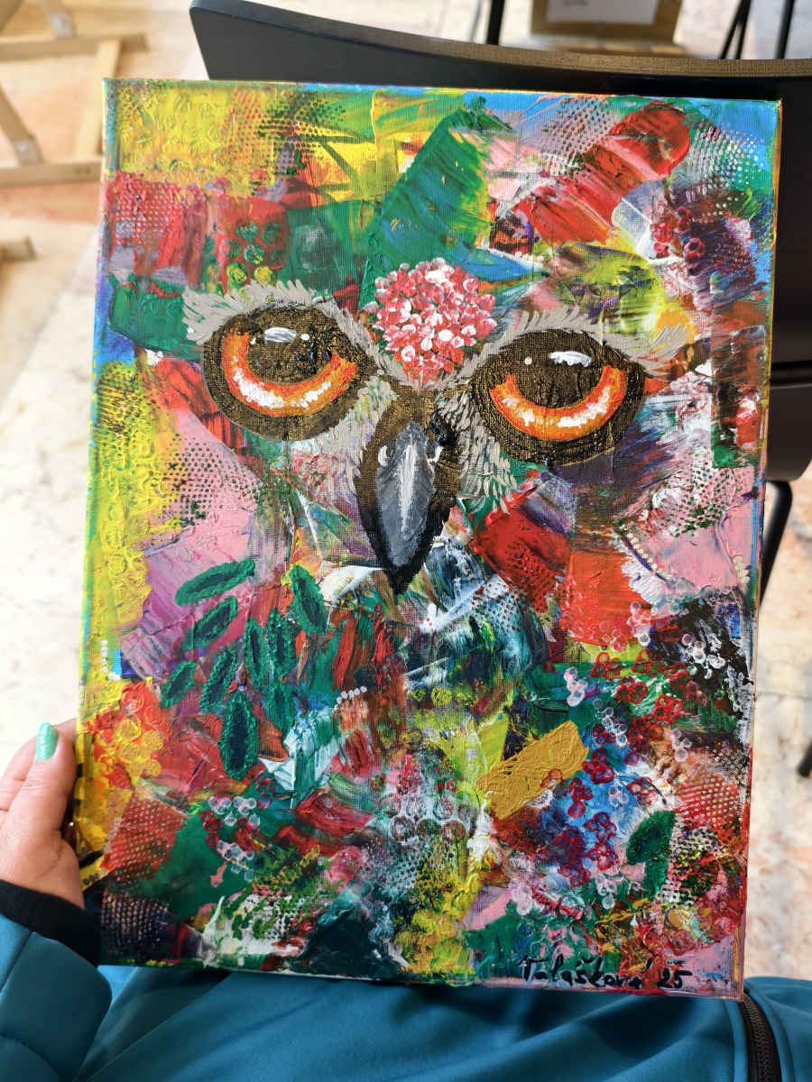 Odcházím z příjemné aukce, a nakonec i já mám svůj obraz – sovu. Tak zase za rok.