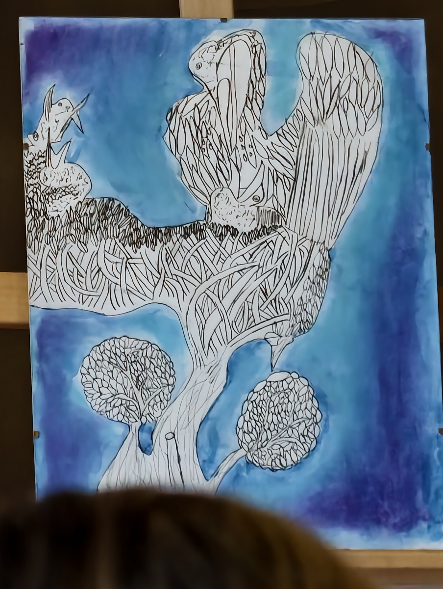 Je čtvrtek odpoledne a já přicházím do KD Milovice. Aukce začíná v 17 hodin, jsem tady dřív a prohlížím si vystavené obrazy. Všechny vytvářeli žáci Základní školy TGM Milovice a také paní učitelka Valášková. Nemohu říct malovali, neb byla použita široká škála technik tvorby.