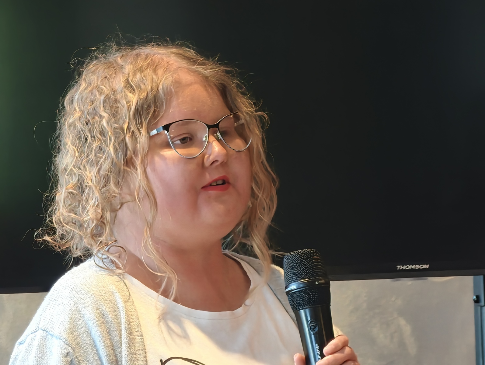 A už se laminuje šek, s nímž přichází ředitelka školy Lada Flachsová. Odtajňuje 53 tisíc korun! Krásná práce! Ještě se mi líbila jedna věc, kterou musím zmínit. Moderování. Paní moderátorka svůj úkol zvládla naprosto bravurně.