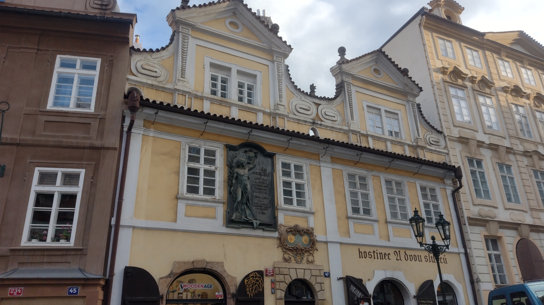 Když už jsme u těch desek, tak Petr Brandl ji na svém rodném domě sice nemá, ovšem zkrátka taky nepřišel – připomíná ho deska na budově, která je naší druhou dnešní zastávkou. Vzdálená je zhruba osm až deset minut chůze. Od Domu u červeného lva se vydejte dolů Nerudovou ulicí až na Malostranské náměstí a pak zahněte doleva do Sněmovní ulice. Projdete kolem busty Karla Kryla, Thunovského paláce a Poslanecké sněmovny a až narazíte na Památník Milady Horákové, už jste v podstatě na místě. Stačí přejít drobné náměstíčko s moderním památníkem a před vámi je dům se žlutočervenou fasádou a zdobnými balkonky s číslem164/8. Právě zde jistě nepřehlédnete desku umělce i s vysvětlením, že Brandl zde žil a tvořil v letech 1681-1687. Stejně tak na vás z budovy shlíží ještě další významná osobnost kromě Brandla, a to secesní architekt Josef Fanta. Také zde bychom ovšem dnes našli jen ubytování pro zámožné turisty – nachází se zde hotel s názvem Alchymist Prague Castle Suites.