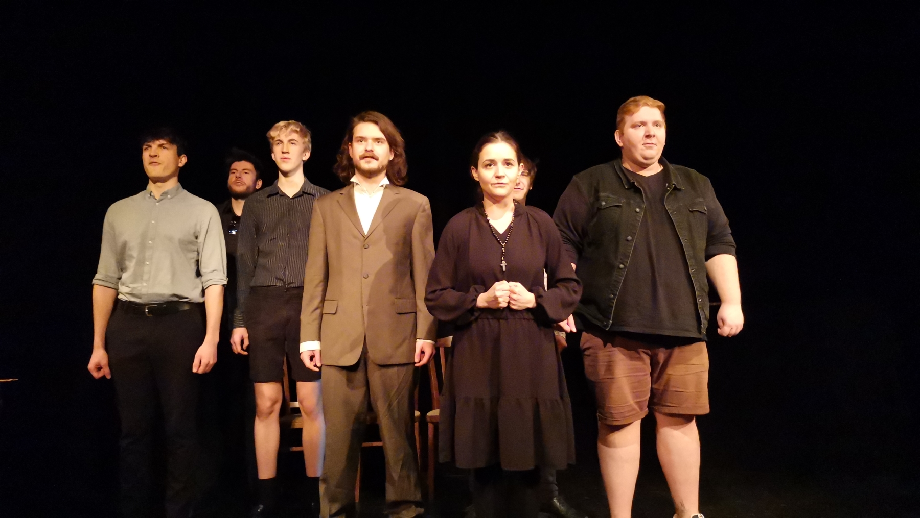 Štěpán Zahálka, Martin Broum, Karel Venhoda, Dominik Roneš, Adéla Víchová a Jiří Karas v Matce Foto ze zkoušky: Lída Čechová