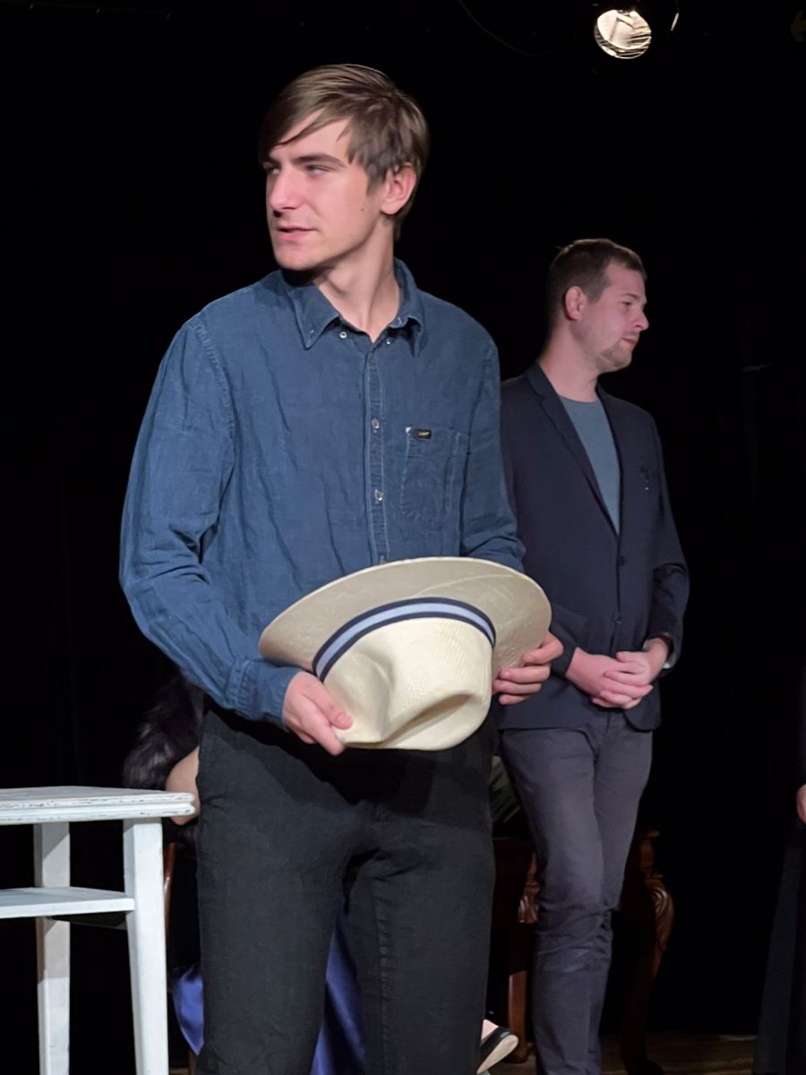 Celou dobu našeho čekání navíc na scéně seděl mladík, slepý harmonikář Kolja (Václav Bastl) a hrál na akordeon. Před sebou měl klobouk a cedulku, kde bylo napsáno, že mu do klobouku můžeme za jeho hudební výkon hodit nějaký ten pětník. Škoda že nápis byl jen v azbuce, takže význam jsem si jen domýšlela. Přiznám se, že tato hudební vložka, ač na začátku působila jako milé zpestření, pro mě osobně trvala už moc dlouho.