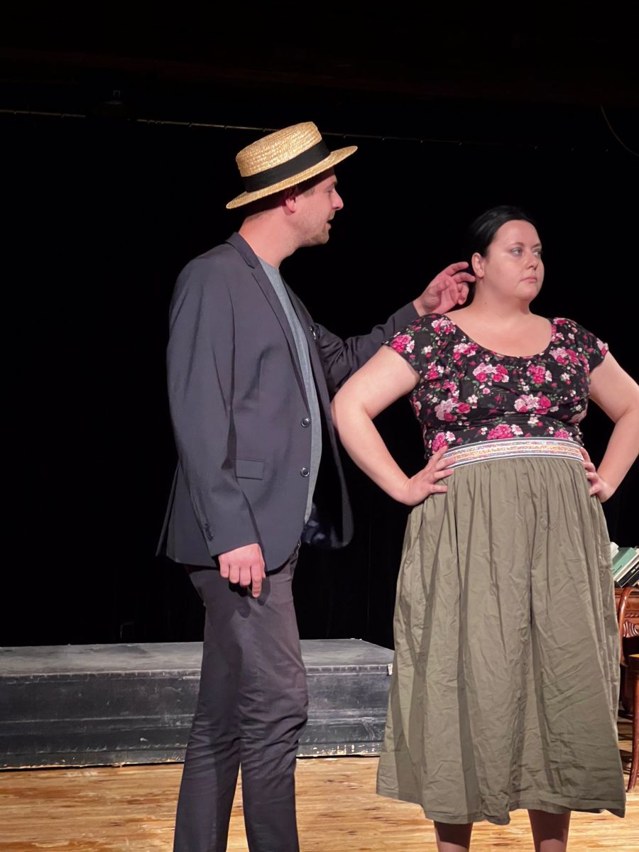 Celou dobu našeho čekání navíc na scéně seděl mladík, slepý harmonikář Kolja (Václav Bastl) a hrál na akordeon. Před sebou měl klobouk a cedulku, kde bylo napsáno, že mu do klobouku můžeme za jeho hudební výkon hodit nějaký ten pětník. Škoda že nápis byl jen v azbuce, takže význam jsem si jen domýšlela. Přiznám se, že tato hudební vložka, ač na začátku působila jako milé zpestření, pro mě osobně trvala už moc dlouho.