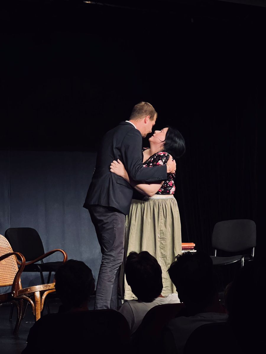 Celou dobu našeho čekání navíc na scéně seděl mladík, slepý harmonikář Kolja (Václav Bastl) a hrál na akordeon. Před sebou měl klobouk a cedulku, kde bylo napsáno, že mu do klobouku můžeme za jeho hudební výkon hodit nějaký ten pětník. Škoda že nápis byl jen v azbuce, takže význam jsem si jen domýšlela. Přiznám se, že tato hudební vložka, ač na začátku působila jako milé zpestření, pro mě osobně trvala už moc dlouho.