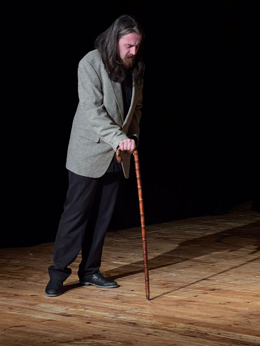 Celou dobu našeho čekání navíc na scéně seděl mladík, slepý harmonikář Kolja (Václav Bastl) a hrál na akordeon. Před sebou měl klobouk a cedulku, kde bylo napsáno, že mu do klobouku můžeme za jeho hudební výkon hodit nějaký ten pětník. Škoda že nápis byl jen v azbuce, takže význam jsem si jen domýšlela. Přiznám se, že tato hudební vložka, ač na začátku působila jako milé zpestření, pro mě osobně trvala už moc dlouho.