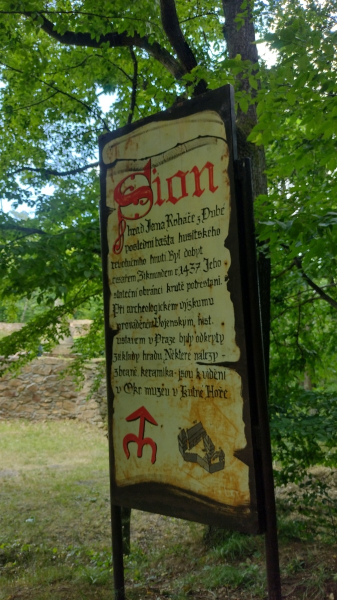 My jsme se tedy na toto historicky zajímavé místo dopravili autem – původně jsme se vydali na houby, ale protože bylo příliš sucho, vzdali jsme to poměrně brzy a hledal se náhradní plán. Google Mapy nás perfektně navedly, ovšem tím, že jsme vyjížděly z místa nedaleko Kozohlod, projeli jsme i řadu vesnic s velmi zajímavými názvy – Žáky, Močovice, Kluky či Pucheř. Vy ale třeba pojedete méně dobrodružnou trasu, například z Kutné Hory byste tam jeli autem 13 minut. Malinké parkoviště, pokud tedy nepřejedete zatáčku, na níž navádí maličký ukazatel s názvem Sion, se nachází velmi blízko samotnému hradu, respektive jeho zřícenině.