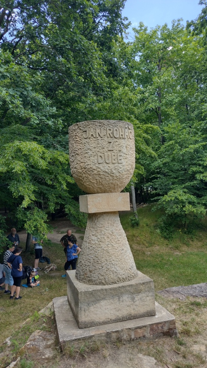 Osobně si ale myslím, že daleko více návštěvníků sem proudí buď pěšky či na kole. Ostatně pořád nám do očí svítily červené a zelené turistické značky, dojdete asi i po modré. A soudě podle obrovské koňské koblihy, na níž jsme po cestě narazili, je zřejmě možné sem dorazit i koňmo. To už pak budete mít v podstatě pocit, že jste se vrátili v čase a sami patříte k družině husitského hejtmana Jana Roháče z Dubé.