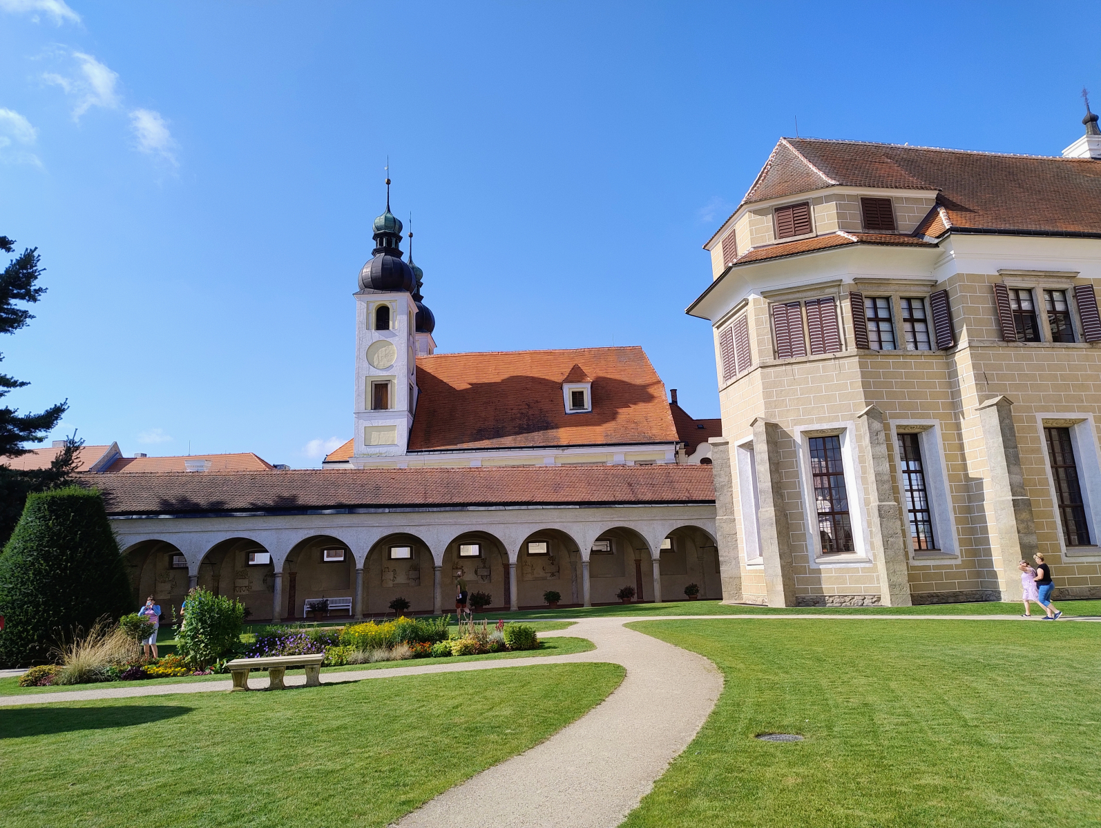 Za zmínku i pohled pak jistě stojíi sousoší Adama a Evy ve výklenku na nádvoří, jimiž chtěl Zachariáš evokovat dojem rajské zahrady. Takže zkrátka podtrženo a sečteno – v Telči je ráj :).
