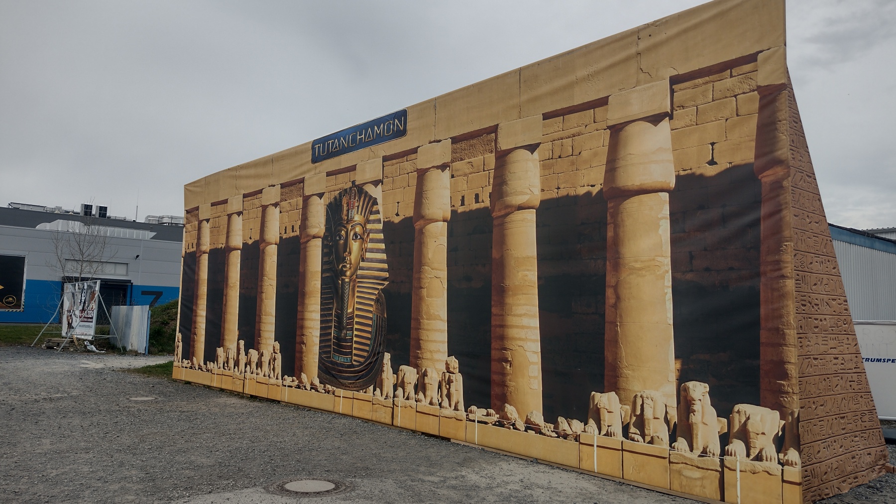 Nejprve bych chtěla říct, že po letech už se znovu ten magický pocit v plné míře nedostavil (ale jisté kouzlo vystavené předměty stále mají) a snažila jsem se spíše posbírat na akci co nejvíc informací i nějakou tu fotku jako vzpomínku. Ostatně fotit se smí, ovšem bez blesku, jak se dozvíte na webu výstavy i při samotném vstupu. Stejně tak lístky jsou k dispozici jak online, tak na pokladně na místě (v budce). Značení přímo na PVA Letňany bylo nejprve trochu matoucí, velká cedule byla u vstupu do areálu a pak dlouho nic, pouze malinká nevýrazná cedulka na sloupu. Teprve když jsme se dali kolem budovy doleva, opět jsme narazili na větší cedule a značky vedoucí k Tutanchamonově „hrobce“. A pak už opravdu není pochyb, protože v dáli uvidíte atrapu egyptského chrámu, kterou už určitě nepřehlédnete.
