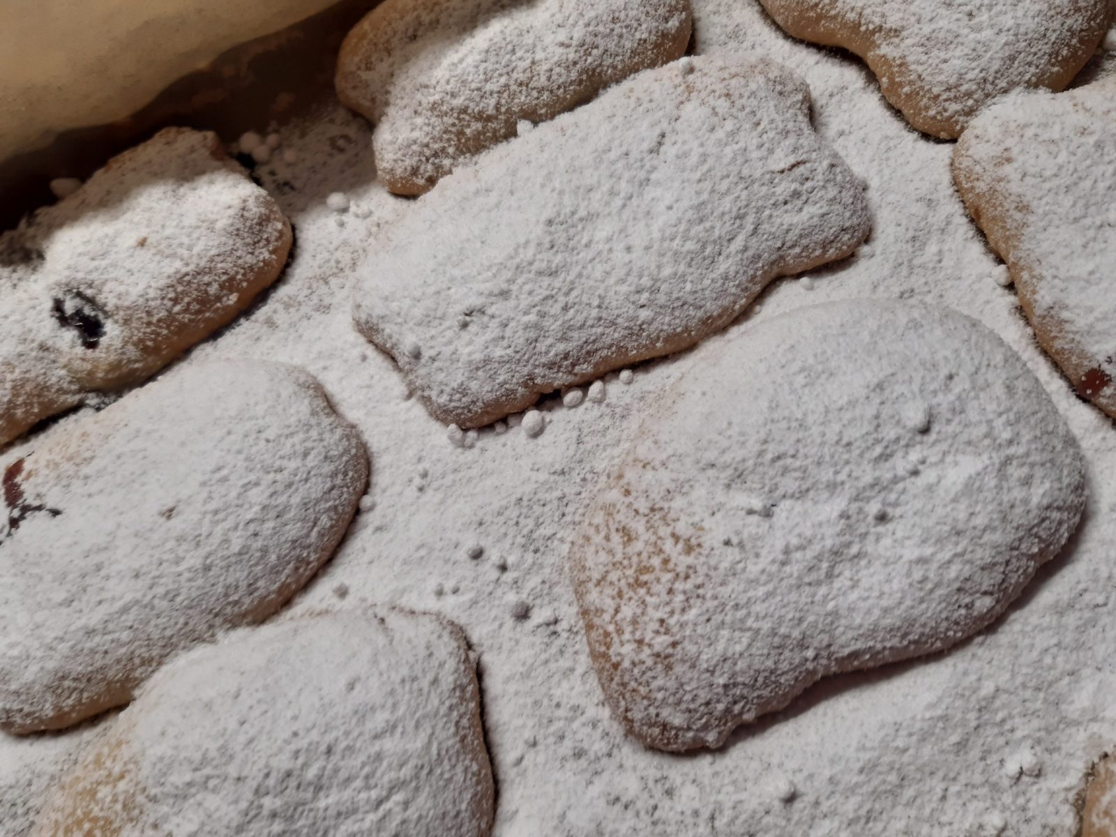 Kostičky pečeme v troubě vyhřáté na 150 stupňů, jakmile zezlátnou, vyjmeme je, pocukrujeme a podáváme. Nějaké pak schovejte do noci dušičkám, které k vám přijdou z očistce, ať si mohou také dát. K tomu jim na stůl přichystejte máslo, jímž si pak budou moci pomazat bolístky, jež v očistci utrpěly.