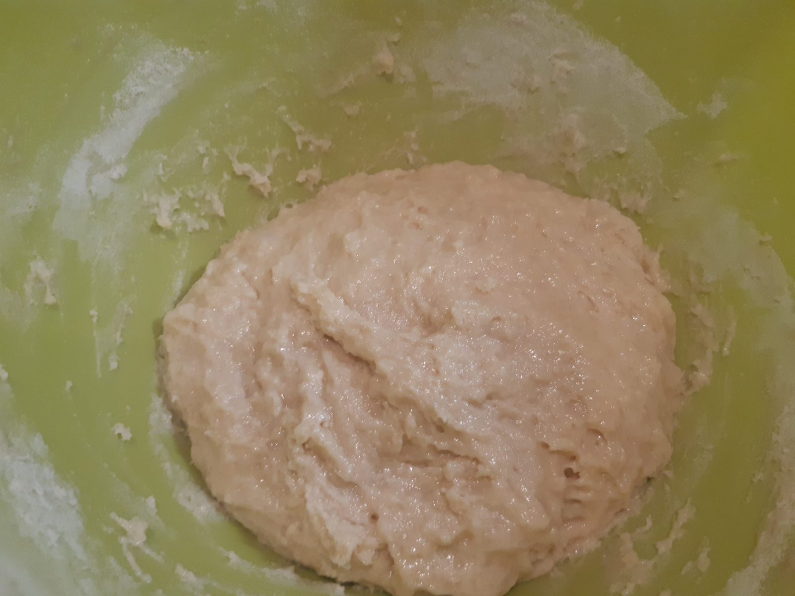 Smícháme trochu vlažné vody, droždí, cukru a mouky. Chvilku necháme na teplém místě, aby nám vzešel kvásek. Jakmile kvásek vzejde, tak přidáme všechny ostatní ingredience. Těsto necháme na teplém místě kynout asi hodinky.