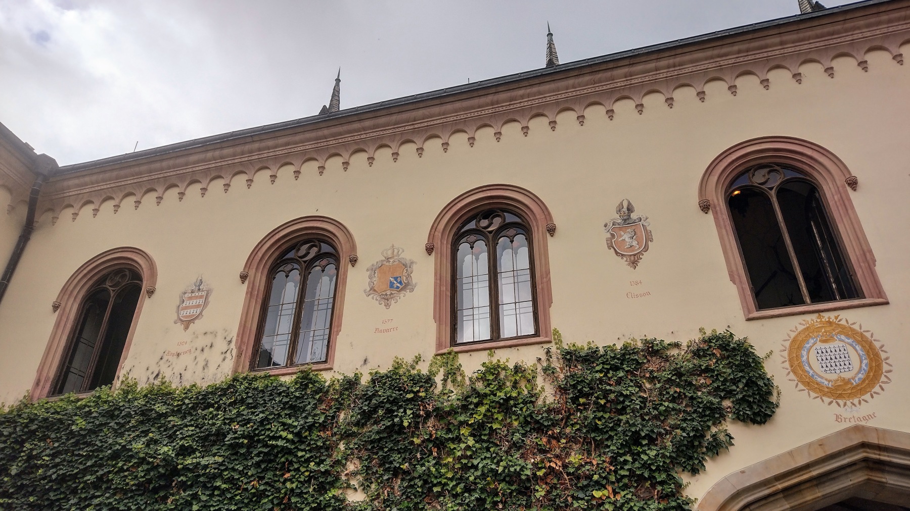 Stačilo vejít bránou na nádvoří a hned jsem v duchu viděla pochodující vojáky, kteří dostali od svého krále „velký úkol“, který plní s popěvkem My jdem, my jdem, vojenským pochodem…“ na rtech. Na nádvoří se ještě chvíli zdržím, abych vás upozornila na malované erby s letopočty, které uvidíte na fasádě kolem dokola. Jak jsme se dozvěděli v rámci prohlídky, jedná se o jakousi poctu všem urozeným dámám, které se přivdaly do rodu Rohanů, jednoho z nebohatších šlechtických rodů Francie. Vždy se tak jedná o rodový erb dané nevěsty a rok, kdy k sňatku došlo.