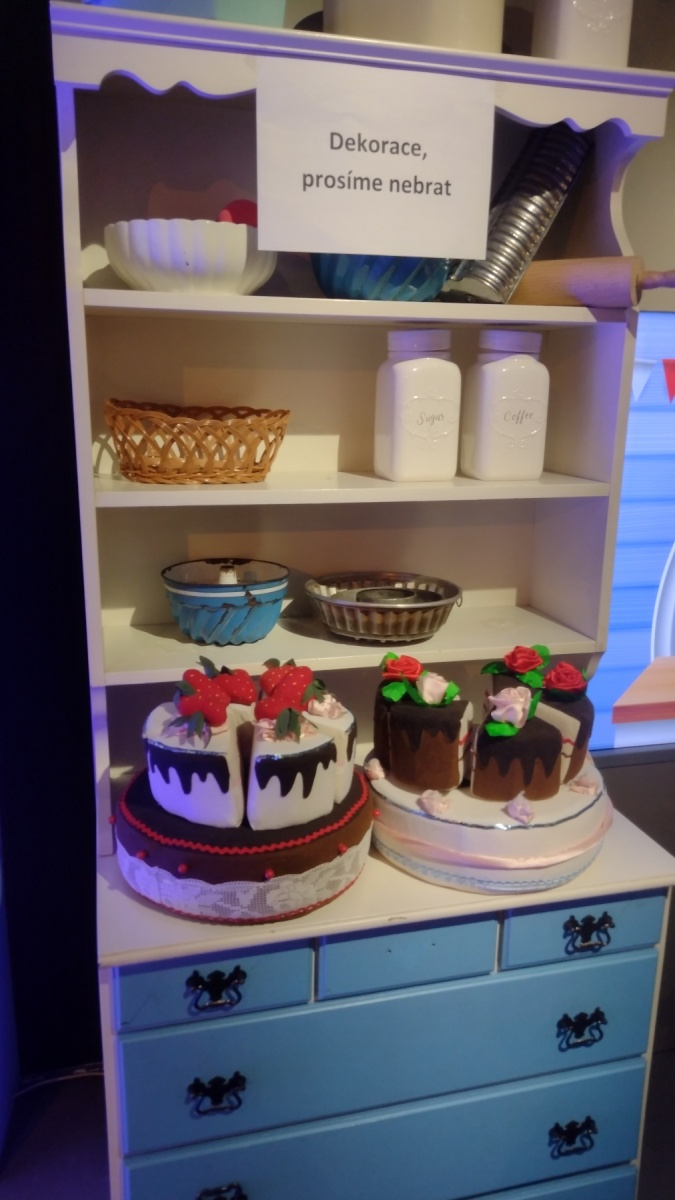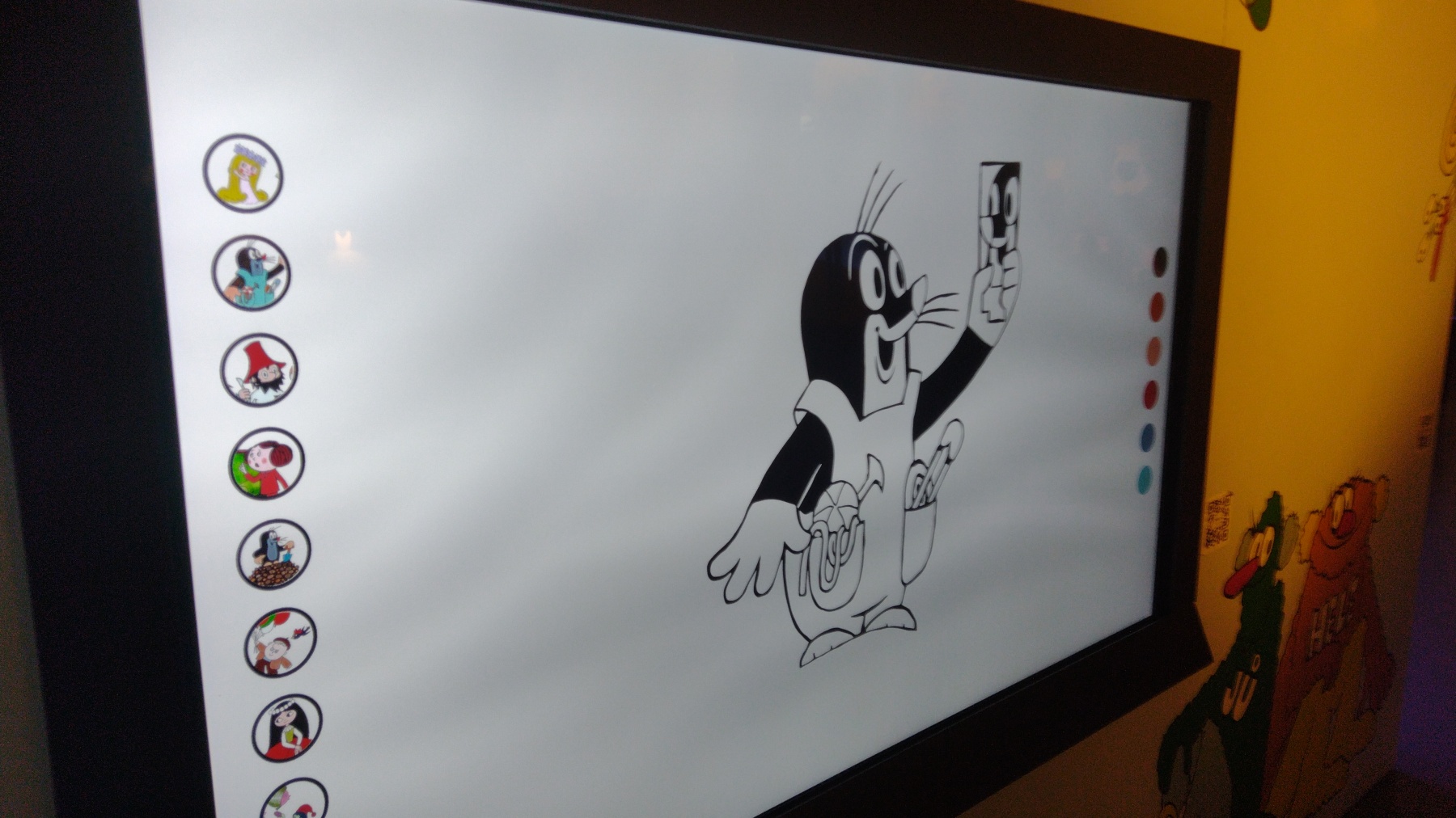Já měla štěstí, že jinak už fungovalo naprosto všechno, jen občas by se někde hodil i nějaký krátký návod. Přesto jsem si nakonec vždycky nějak poradila i bez něj – chvíli jsem tak soutěžila ve Videostopu, na dotykové obrazovce ve stylu Peče celá země jsem si zkoušela vytvořit dortík podle předlohy, na jiné obrazovce jsem se stala drakobijcem a na další jsem si mohla vymalovat Vílu Amálku či Krtečka. Jen se tedy musíte barevně držet předlohy, Amálku s růžovými vlásky mi to nevzalo. Také mě hodně bavilo přiřazovat hlášky k filmům a pohádkám. A ještě musím zmínit, že vtipné byla také různá místa k sezení – jedna lavička byla ve tvaru dortíku a jiná vypadala úplně jako nanuk.