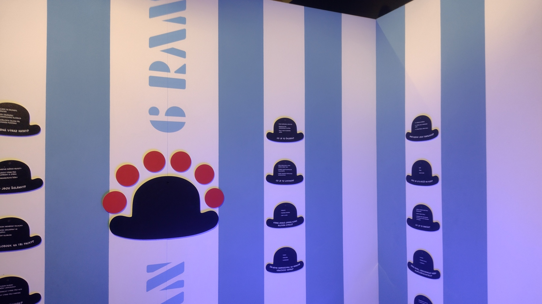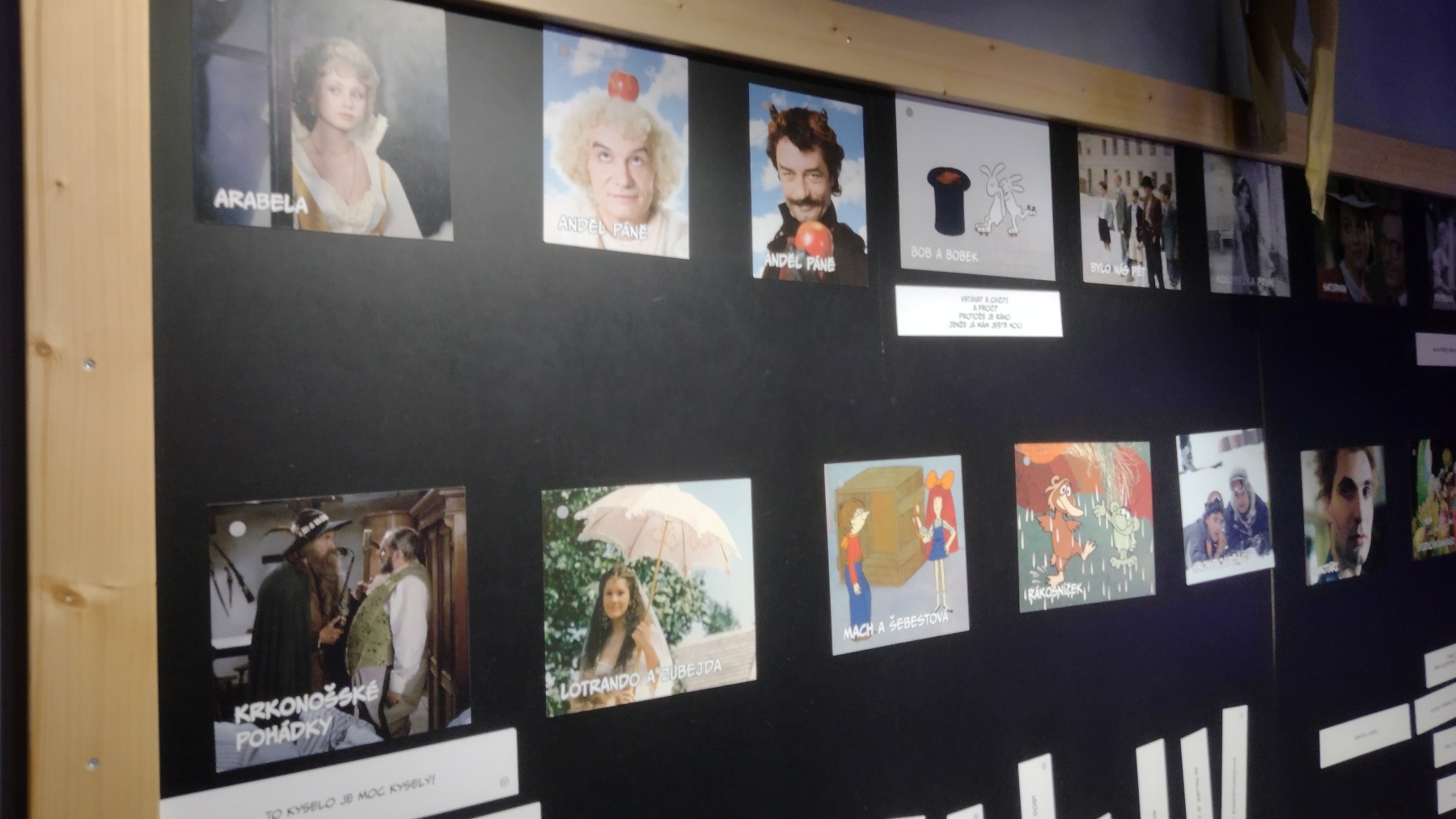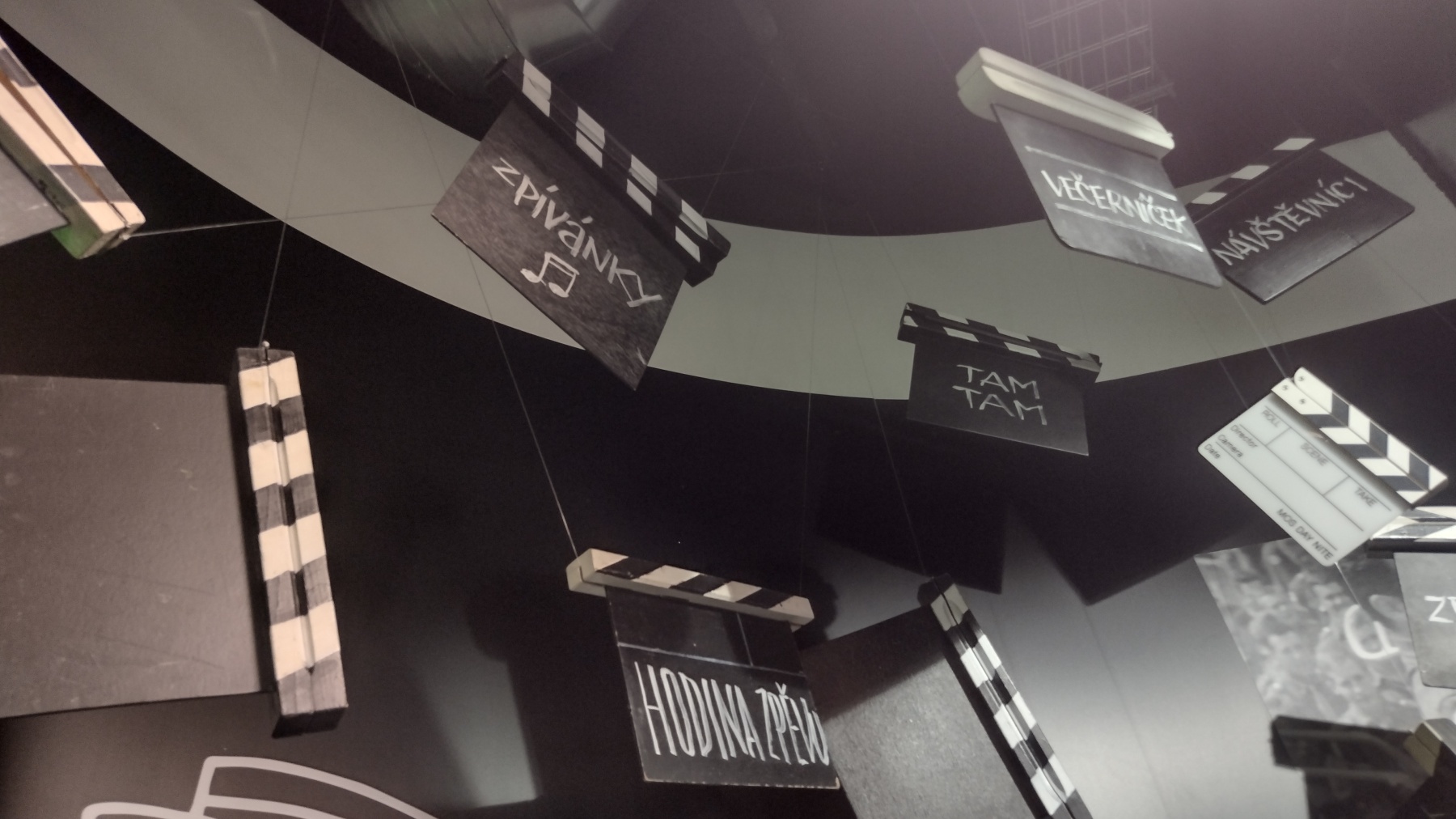 Jen pozor, podle mapy jsem došla na recepci televize, která je vlastně nad prostorem výstavy. Naštěstí tam mě už pán nasměroval správně – stačilo sejít schody dolů. Vtipné je, že na výstavu vstupujete vlastně přes obchod České televize, takže pokud vyrazíte s dětmi (a to byste měli:)), peníze, co ušetříte na vstupném, jistojistě utratíte právě zde. V nabídce jsou například knihy, DVD, stolní hry i hračky. Sama jsem musela odolávat, abych si domů neodnesla plyšového Maxipsa Fíka.