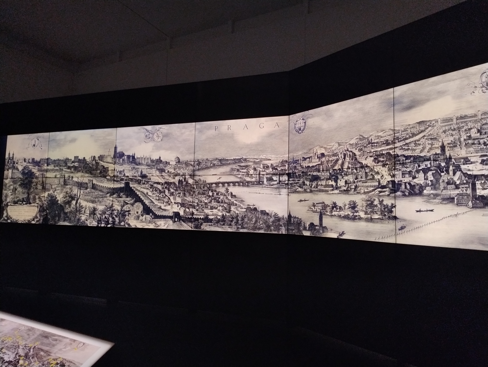 Když pak vystoupáte po schodech do 1. patra (a výstava pokračuje i v patře druhém), už se přenesete v čase ještě o nějaké to století zpět, přičemž brzy zjistíte, že podobu Prahy, jakou jste dole navnímali, z velké části ovlivnil právě Karel IV. Rovněž v této části expozice nechybí moderní prvky – z velké části se díváte na videa či projeke, případně si můžete prohlédnout různé modely ať již Prahy jako takové či nějaké konkrétní památky. Musím ocenit, že komentář (v češtině i v angličtině) je většinou příjemně stručný, takže člověk snadno udrží pozornost. Vzhledem k některým odlehčenějším pasážím se pak podle mého názoru nebudou nudit ani dětští návštěvníky, pro něž je navíc v nejvyšším patře přichystaná krásná hernička. Za ní je pak »tichá část výstavy«, v ideálním případě je to takové hezké zákoutí, kde se můžete posadit a v klidu si číst. V reálu ovšem ono ticho není zaručeno, jelikož prostor přímo sousedí s již zmíněnou herničkou.