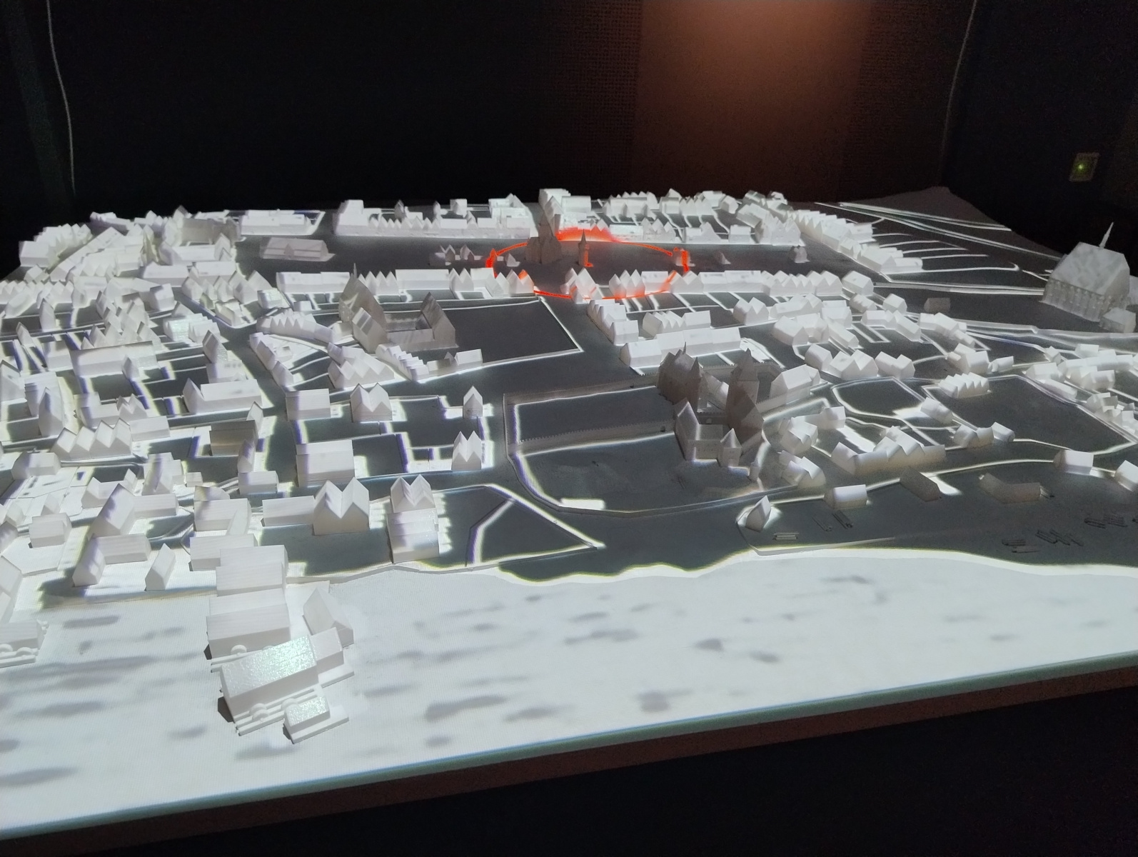Když pak vystoupáte po schodech do 1. patra (a výstava pokračuje i v patře druhém), už se přenesete v čase ještě o nějaké to století zpět, přičemž brzy zjistíte, že podobu Prahy, jakou jste dole navnímali, z velké části ovlivnil právě Karel IV. Rovněž v této části expozice nechybí moderní prvky – z velké části se díváte na videa či projeke, případně si můžete prohlédnout různé modely ať již Prahy jako takové či nějaké konkrétní památky. Musím ocenit, že komentář (v češtině i v angličtině) je většinou příjemně stručný, takže člověk snadno udrží pozornost. Vzhledem k některým odlehčenějším pasážím se pak podle mého názoru nebudou nudit ani dětští návštěvníky, pro něž je navíc v nejvyšším patře přichystaná krásná hernička. Za ní je pak »tichá část výstavy«, v ideálním případě je to takové hezké zákoutí, kde se můžete posadit a v klidu si číst. V reálu ovšem ono ticho není zaručeno, jelikož prostor přímo sousedí s již zmíněnou herničkou.