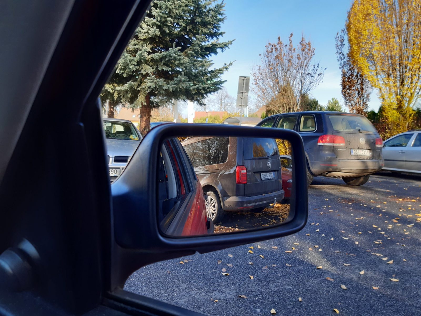 Až se trochu přiblížíme do místa, musíme si též hlídat pravou stranu, ať nenarazíme i do auta na druhé straně